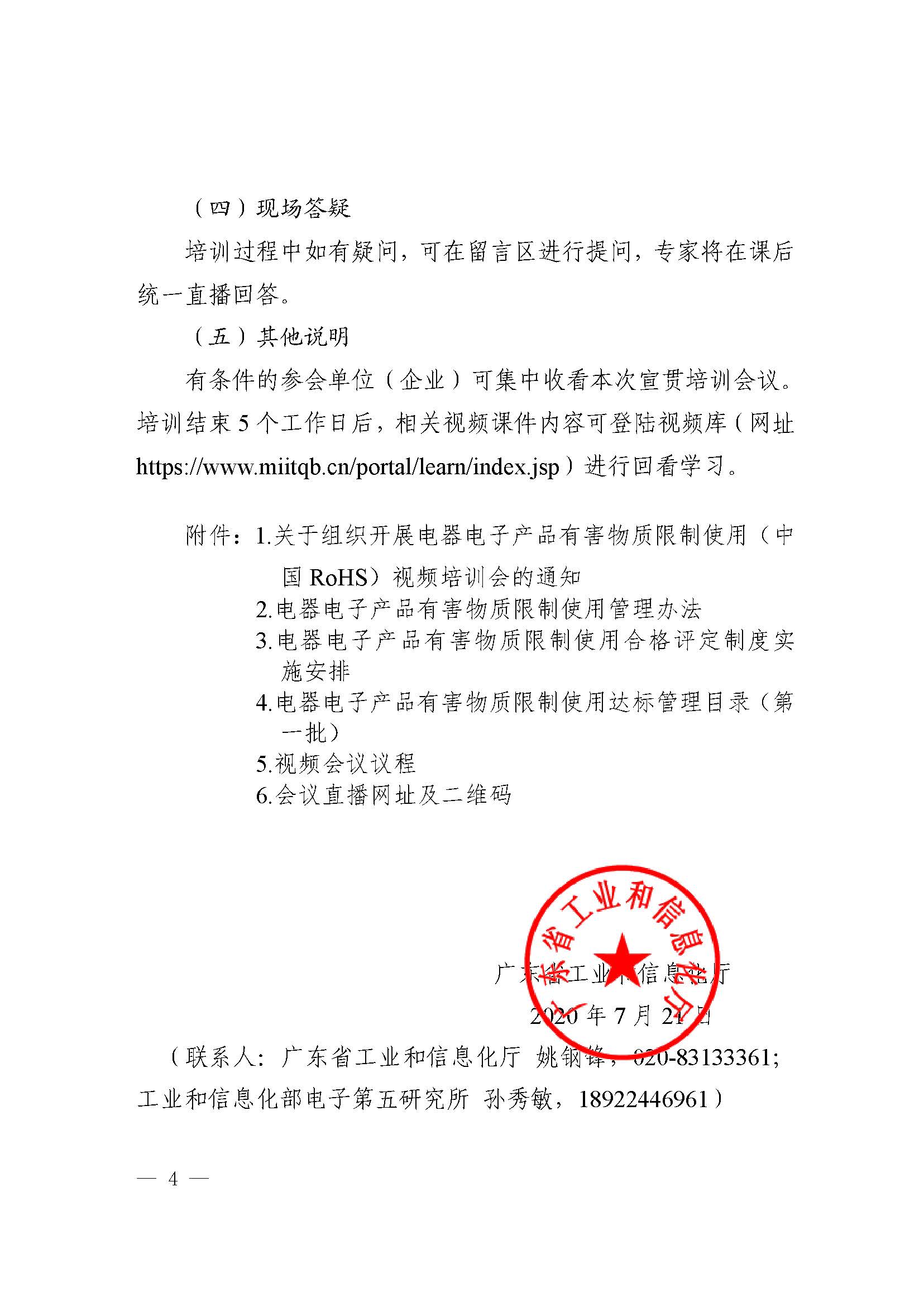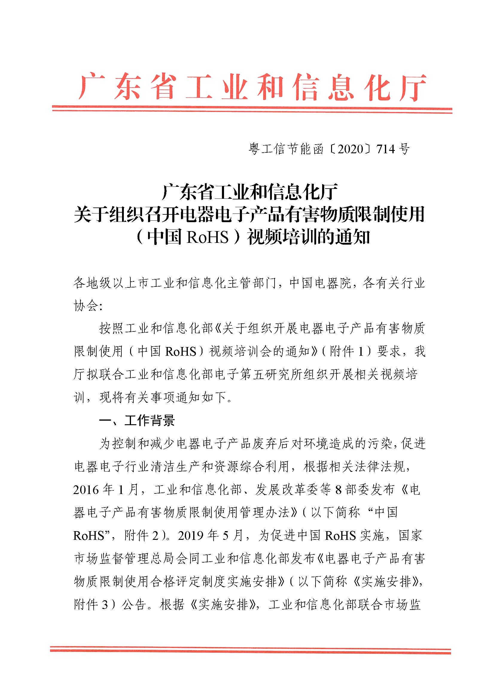 广东省工业和信息化厅关于组织召开电器电子产品有害物质限制使用视频培训的通知