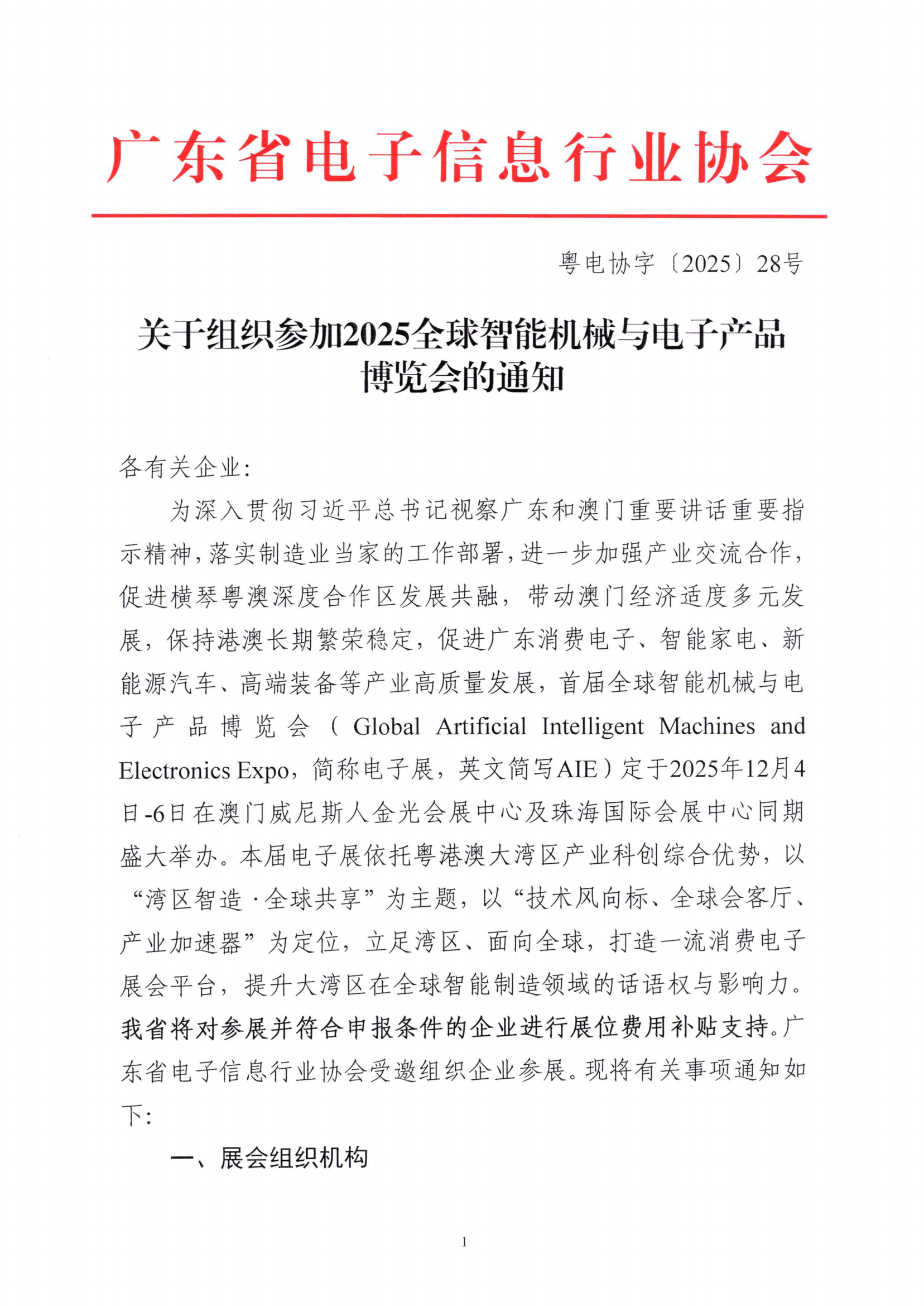关于组织参加2025全球智能机械与电子产品博览会的通知
