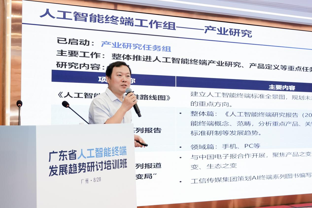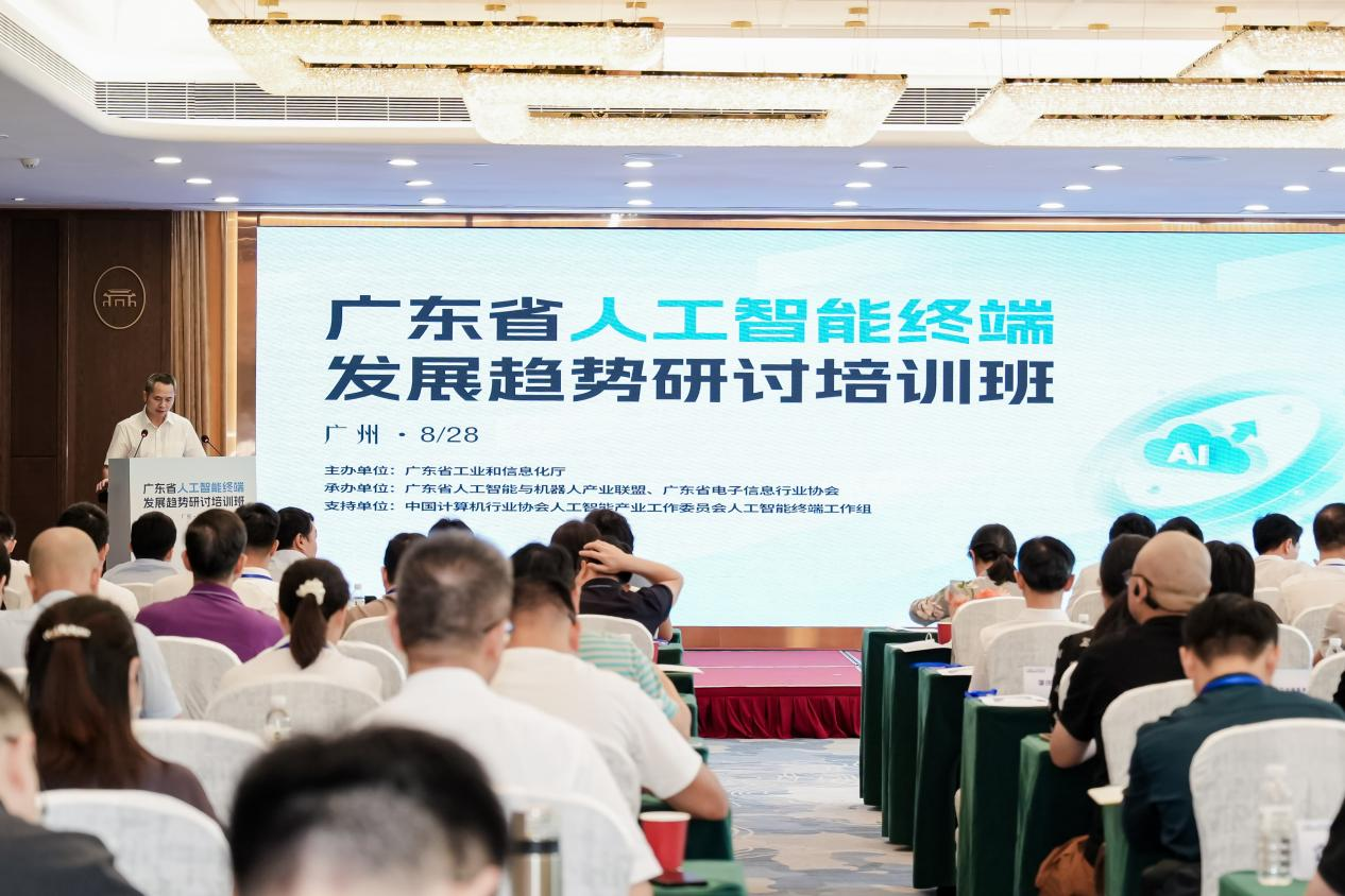 为深入贯彻习近平总书记关于人工智能与机器人领域系列重要讲话精神,认真落实省委“1310”具体部署和全省高质量发展大会要求,加快推动我省人工智能终端产业高质量发展,8月28日,由广东省工业和信息化厅主办、中国计算机行业协会人工智能产业工作委员会人工智能终端工作组等单位大力支持的“广东省人工智能终端发展趋势研讨培训”在广州成功举办。广东省工业和信息化厅二级巡视员万淑萍、工业和信息化部电子信息司消费电子处处长周大铭、全省各地市工业和信息化局相关负责人、人工智能终端企业代表等200余人出席会议。
